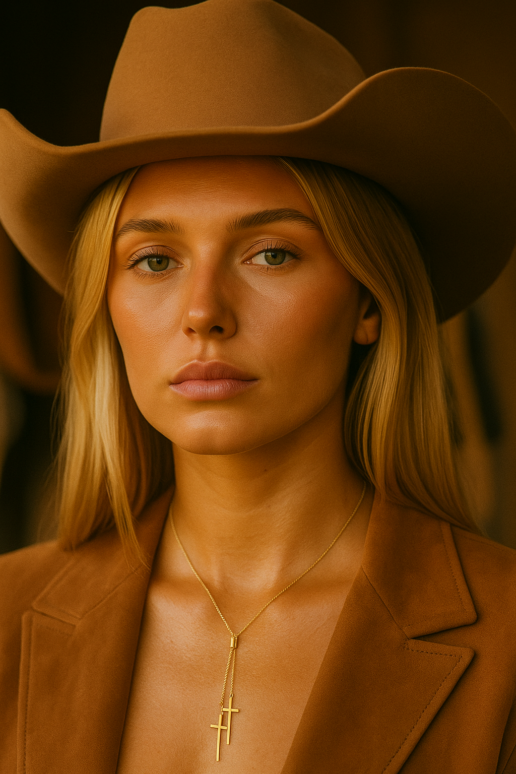 Our Double Cross Lariat offers adjustable versatility, allowing you to style your look to perfection. Elevate your outfit with this luxurious accessory, adding a touch of sophistication and exclusivity to your wardrobe. Enjoy the artful design and customizable fit of our Double Cross Lariat.