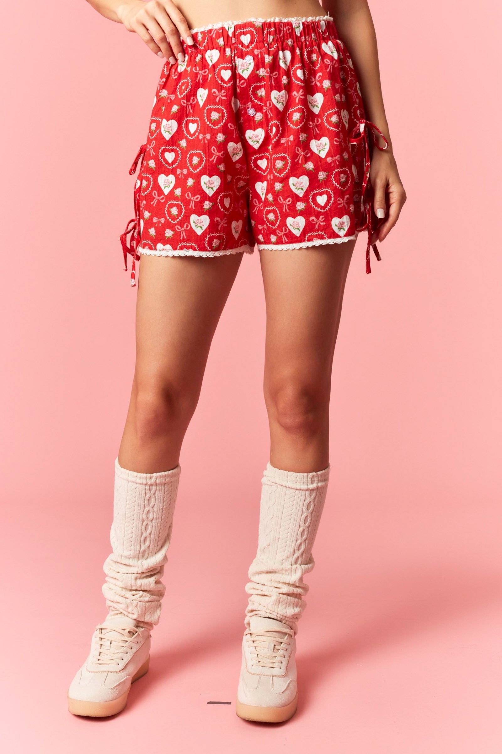 Product Name: Heart With Rose Printed Short With Side Bow Strap Detailed & Scallop Edge Material: 100% Cotton Neckline: N/A Tags: Thigh Length
