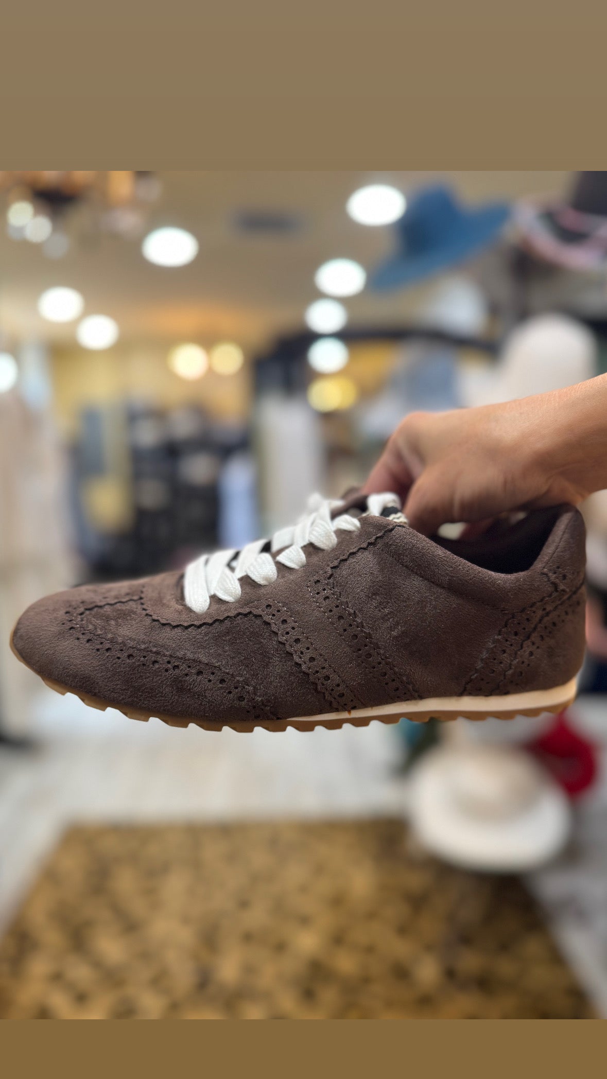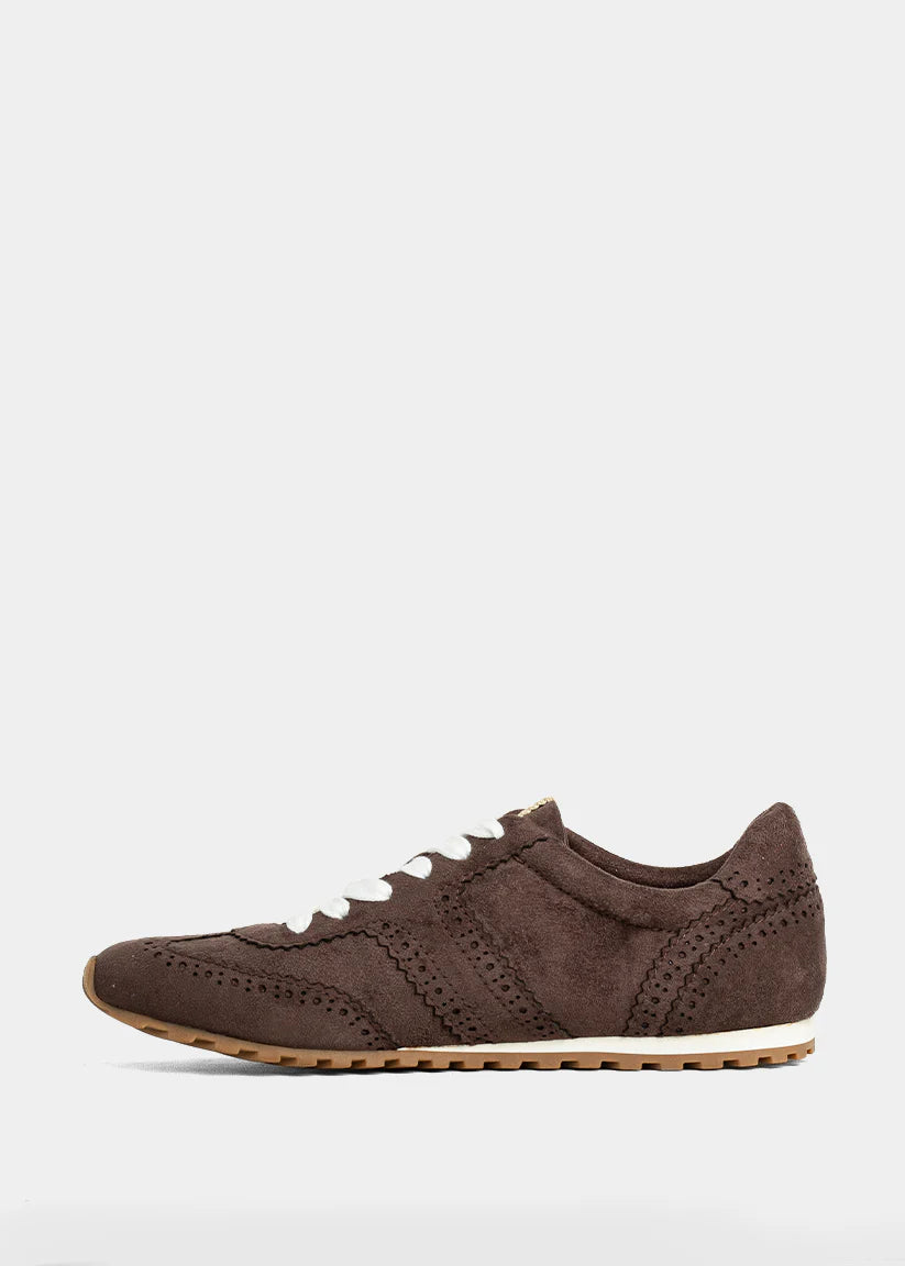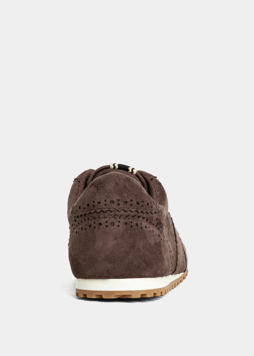 Retro charm, redefined. The PENELOPE sneaker in rich brown suede-texture brings a grounded, heritage feel to your wardrobe. With its brogue-style perforations, contrast laces, and low-profile silhouette, this style effortlessly blends sporty and sophisticated energy. Dress it up with tailored denim or keep it casual with wide-leg trousers-this one’s built for versatility.